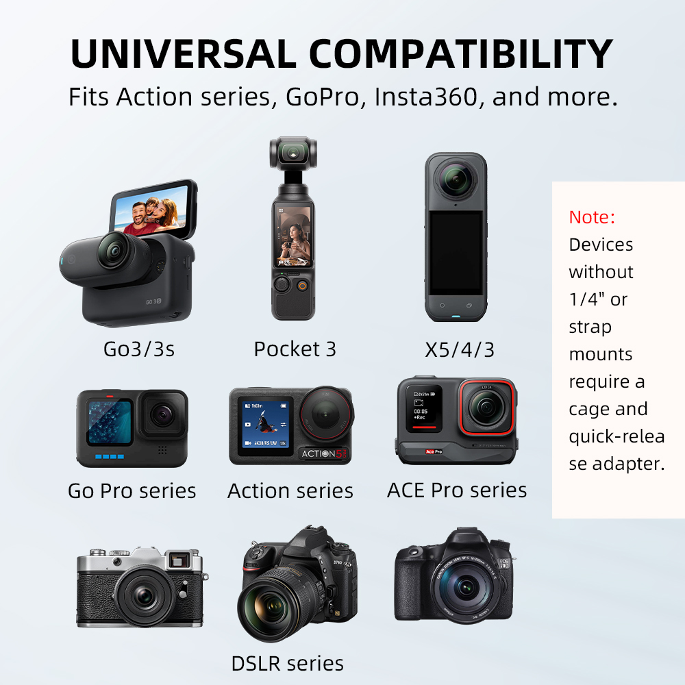 MULTI-FUNCTION STRAP,Universal Fit/Adjustable/Breathable/Secure.UNIVERSAL COMPATIBILITY,For Action Cameras & More.BREATHABLE ELASTIC MATERIAL,Sweat-Resistant/Soft Stretch.NECK & WRIST DUAL-DESIGN,Wear Both Ways/Quick Shooting.SECURE SLIDE BUCKLE,Metal Clip/Slide Adjust/Anti-Slip.MULTI-COLOR OPTIONS,Black/Gray/Blue Available.FOR SPORTS & DAILY USE,Riding/Hiking/Travel Recording.LIGHTWEIGHT DESIGN,Portable/Foldable/Minimal Space.