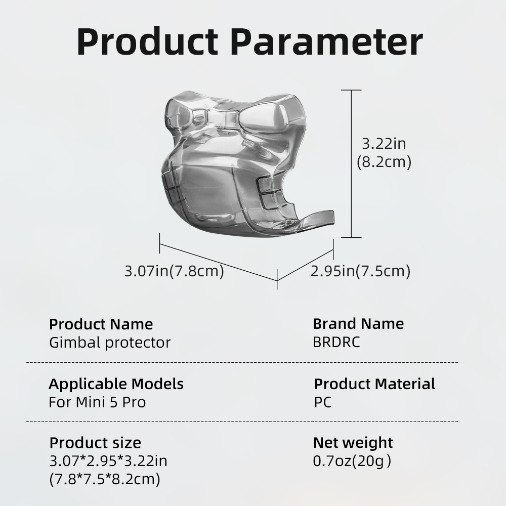 1.Precision Molded – Exact fit to drone curves, secure and stable. 2.Full Protection – Guards against bumps, scratches, and dust; shields the lens. 3.Durable Material – High-quality, flexible, and aesthetically practical. 4.Portable Storage – Folds without affecting drone storage; protects gimbal during transport. 5.Easy Installation – One step setup.