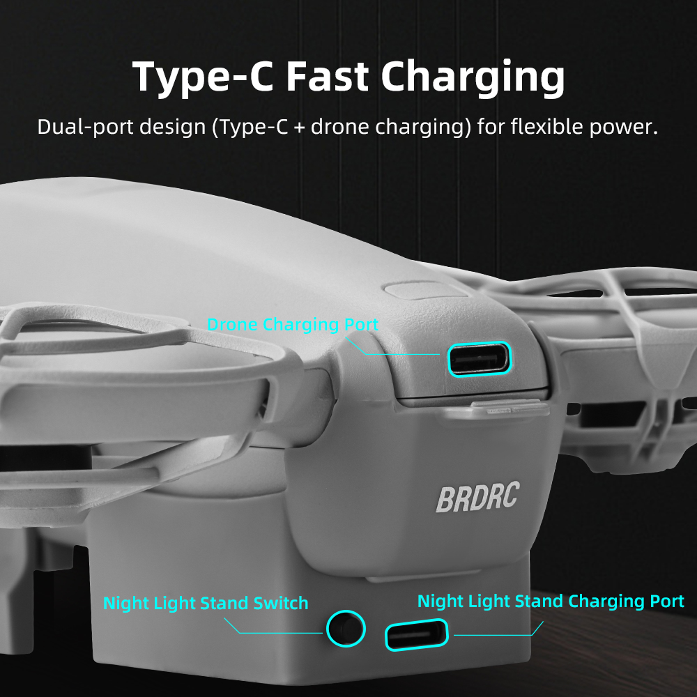 6.Type-C Fast Charging,Dual-port design (Type-C + drone charging) for flexible power.